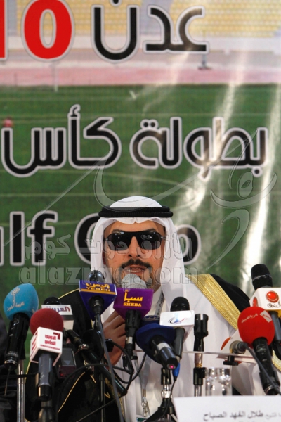 مؤتمر صحفي للشيخ طلال الفهد في فندق الإعلاميين في عدن خلال خليجي 20 بتاريخ 30 نوفمبر 2010