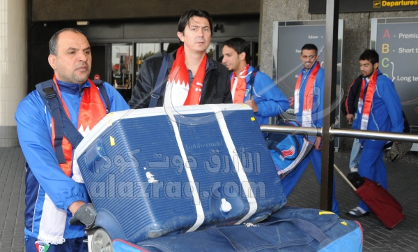 وصول منتخب الكويت الوطني الى البحرين لخوض مباراة ودية استعدادا لتصفيات كأس العالم 2014 بتاريخ 13 فبراير 2011