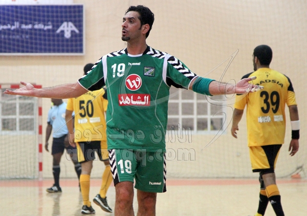 نادي القادسية و النادي العربي في مباراة ضمن الدوري العام لكرة اليد اقيمت بتاريخ 4 ابريل 2012