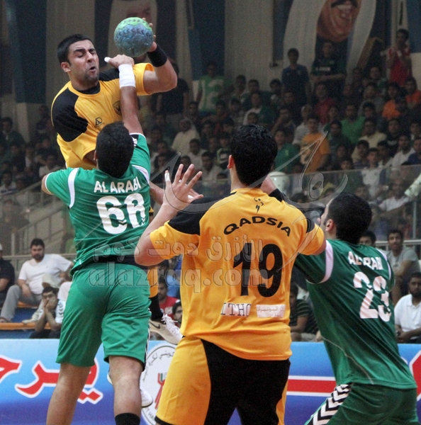 نادي القادسية و النادي العربي في مباراة ضمن الدوري العام لكرة اليد اقيمت بتاريخ 4 ابريل 2012