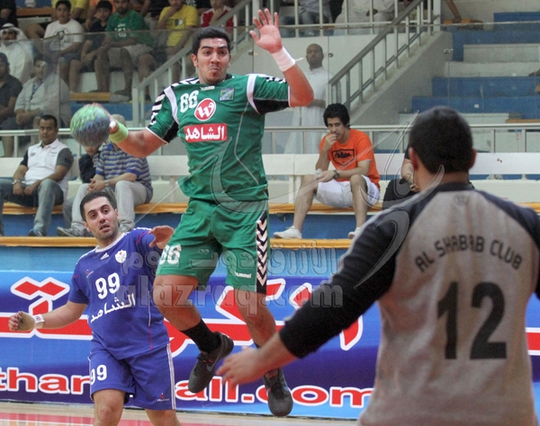 النادي العربي و نادي الشباب في مباراة ضمن الدوري العام لكرة اليد اقيمت بتاريخ 26 ابريل 2012