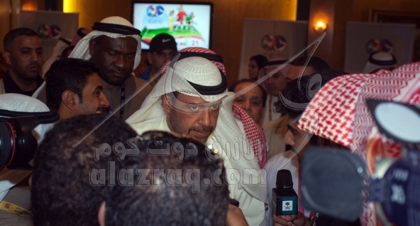 الشيخ أحمد الفهد خلال زيارته لفندق اللاعبين في فندق كراون بلازا خلال خليجي 21 بتاريخ 6 يناير 2013