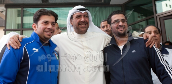 الشيخ أحمد الفهد خلال زيارته لفندق اللاعبين في فندق كراون بلازا خلال خليجي 21 بتاريخ 6 يناير 2013