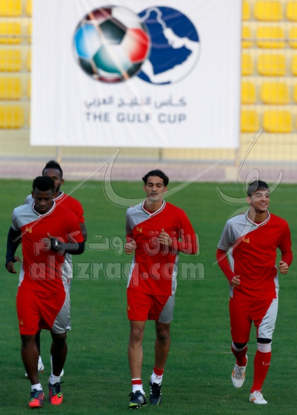 تدريب منتخب عمان خلال بطولة خليجي 21 في البحرين بتاريخ 7 يناير 2013