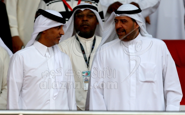 الشيخ احمد الفهد خلال مباراة منتخب قطر ومنتخب عمان في خليجي 21 المقامة في البحرين بتاريخ 8 يناير 2013