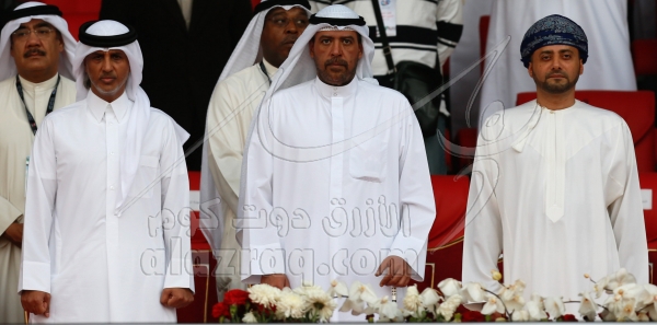الشيخ احمد الفهد خلال مباراة منتخب قطر ومنتخب عمان في خليجي 21 المقامة في البحرين بتاريخ 8 يناير 2013