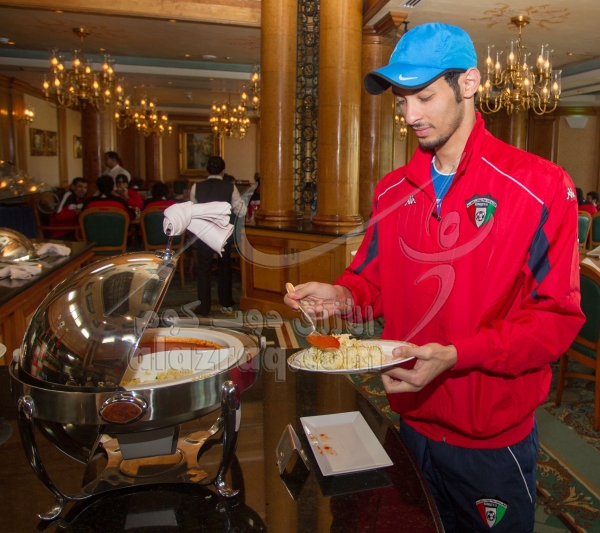 غداء منتخب الكويت في فندق كراون بلازا في المنامة خلال خليجي 21 بتاريخ 13 يناير 2013