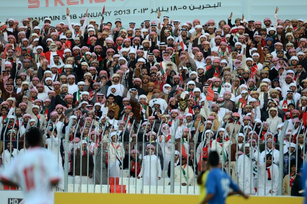 منتخب الكويت ومنتخب الامارات في مباراة قبل نهائي خليجي 21 اقيمت في البحرين بتاريخ 15 يناير 2013