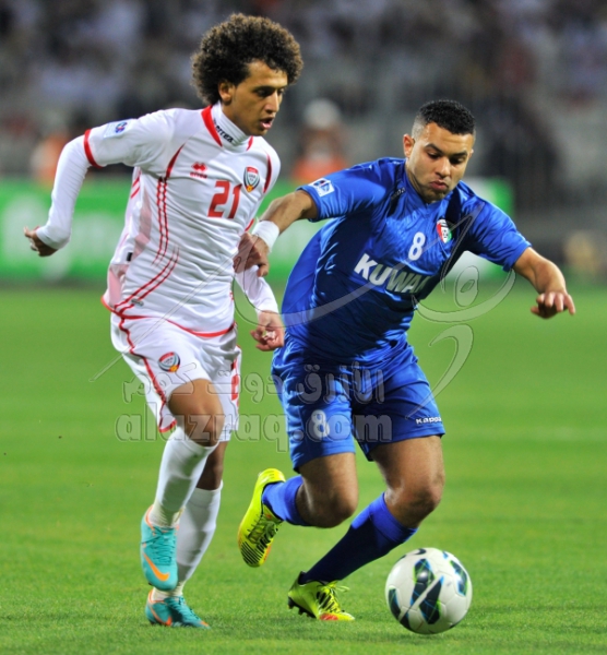 منتخب الكويت ومنتخب الامارات في مباراة قبل نهائي خليجي 21 اقيمت في البحرين بتاريخ 15 يناير 2013