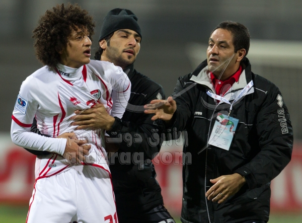منتخب الكويت ومنتخب الامارات في مباراة قبل نهائي خليجي 21 اقيمت في البحرين بتاريخ 15 يناير 2013