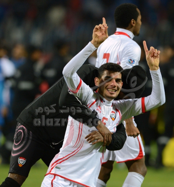 منتخب الكويت ومنتخب الامارات في مباراة قبل نهائي خليجي 21 اقيمت في البحرين بتاريخ 15 يناير 2013