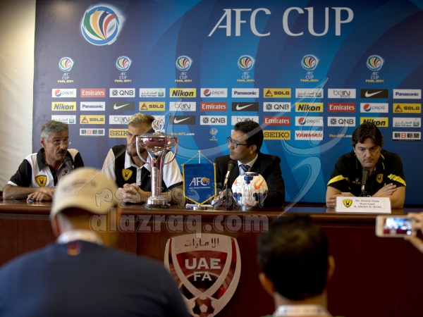 المؤتمر الصحفي قبل مباراة نهائي كأس الاتحاد الاسيوي بين القادسية الكويتي و اربيل العراقي في دبي الذي اقيم بتاريخ 17 اكتوبر 2014