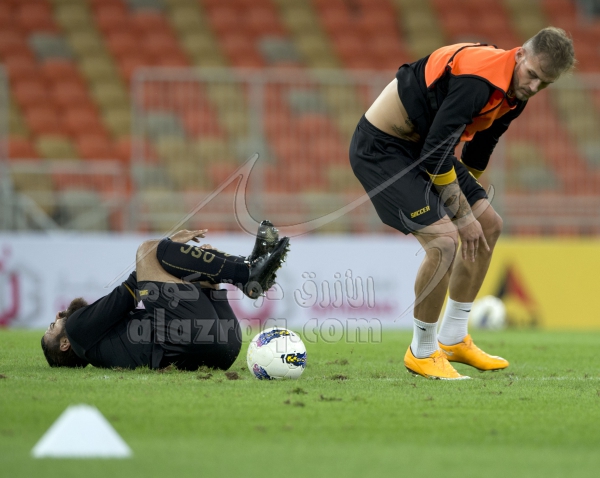تدريب نادي القادسية استعدادا لمباراة الاهلي السعودي ضمن ملحق ابطال اسيا التي اقيم بتاريخ 16 فبراير 2015