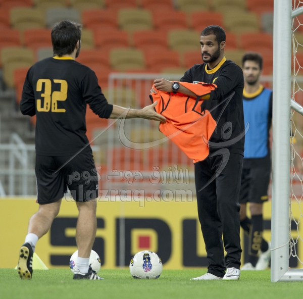 تدريب نادي القادسية استعدادا لمباراة الاهلي السعودي ضمن ملحق ابطال اسيا التي اقيم بتاريخ 16 فبراير 2015
