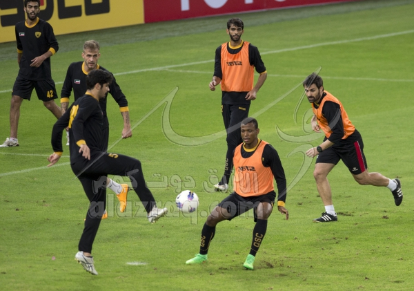تدريب نادي القادسية استعدادا لمباراة الاهلي السعودي ضمن ملحق ابطال اسيا التي اقيم بتاريخ 16 فبراير 2015