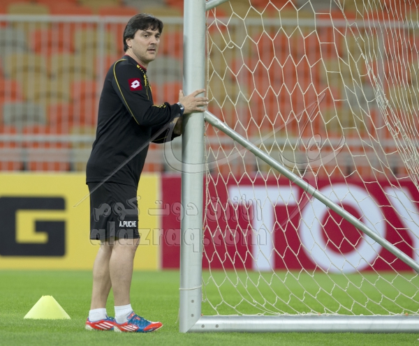 تدريب نادي القادسية استعدادا لمباراة الاهلي السعودي ضمن ملحق ابطال اسيا التي اقيم بتاريخ 16 فبراير 2015