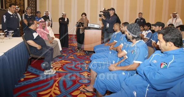 زيارة وزير الخارجية الشيخ محمد الصباح للاعبين المنتخب في فندق انتركونتينتال مقر الوفد خلال كاس اسيا 2011 بتاريخ 13 يناير 2011